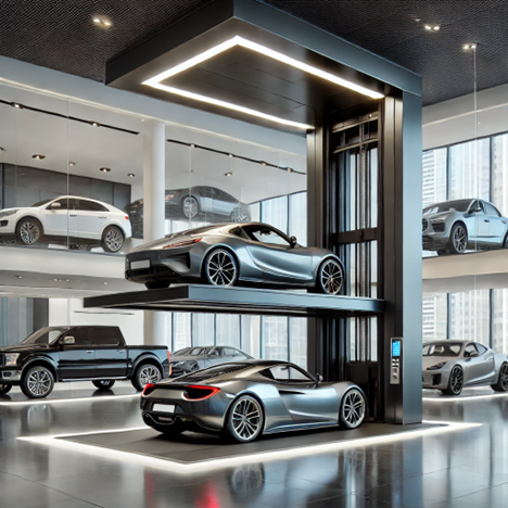 - Elevadores hidráulicos de exhibición: Diseñados para mostrar autos en posiciones elevadas dentro de los showrooms.
